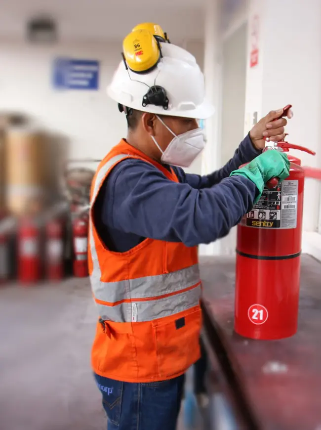 - Evaluación inicial: Inspeccionamos el tipo de extintor y sus condiciones actuales.